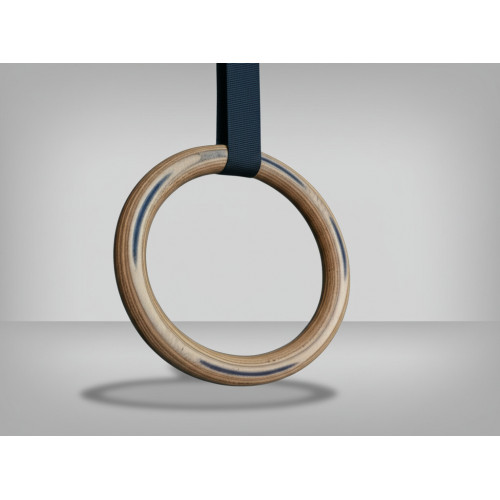 Кольца гимнастические с тросом длиной 2 метра и дополнительной стропой 1 метр, диаметром 23 см, произведённые из многослойной фанеры толщиной 30 мм.