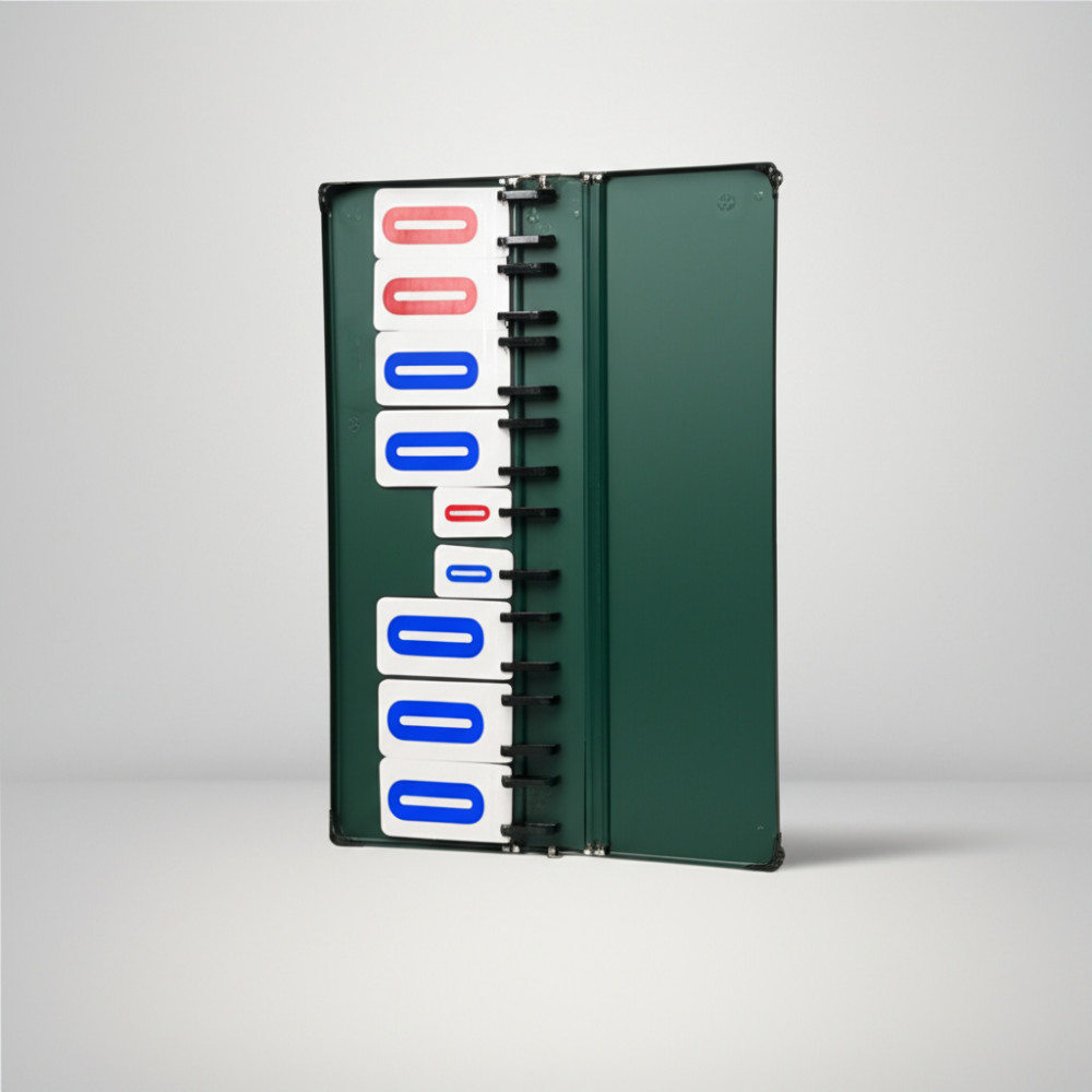 Табло перекидное с металлическим основанием и 8 цифрами, выполненными из пластика, предназначено для удобного отображения значений счёта.