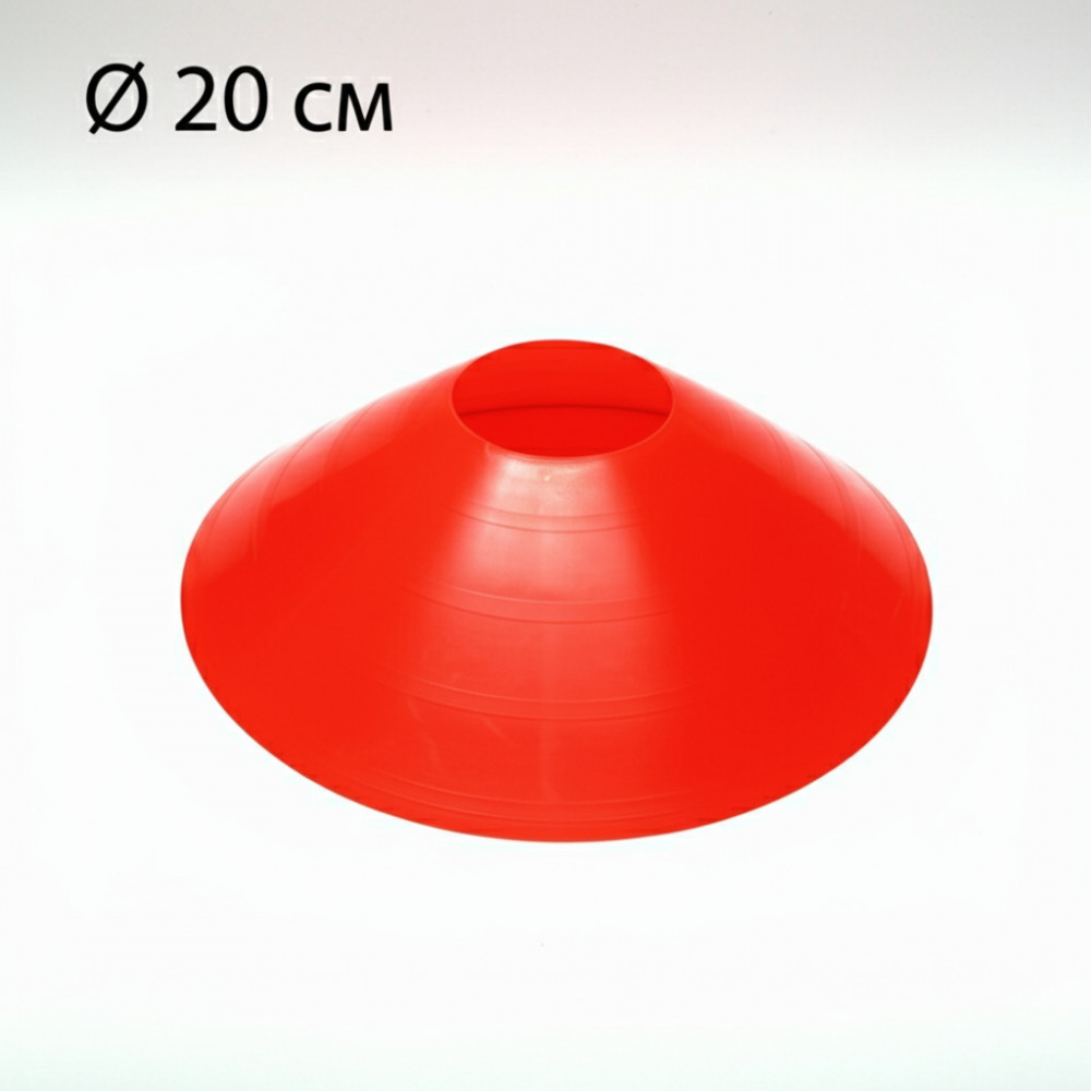 Красный разметочный конус (диаметр 20 см) предназначен для тренировки скорости и координации спортсменов.
