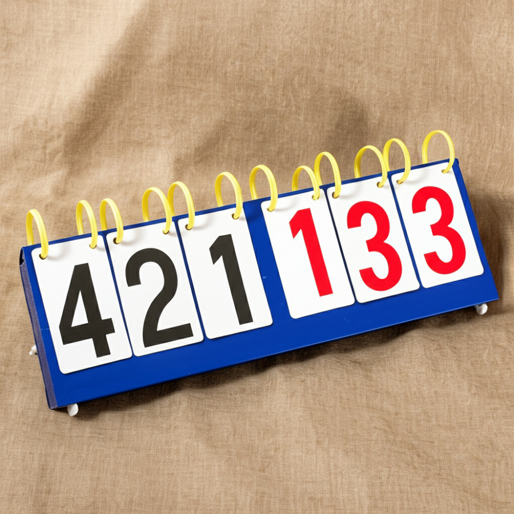 Табло перекидное с 6 цифрами, состоящее из двух рядов по три цифры, размерами 540x180 мм, предназначенное для баскетбольных игр.