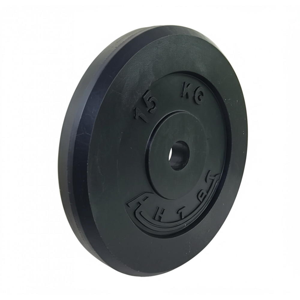 Обрезиненный диск Антат весом 15 кг и посадочным диаметром 26 мм отлично подходит для различных тренировок и занятия спортом.